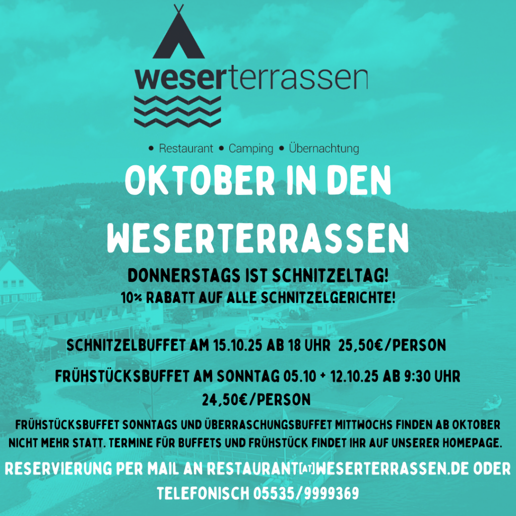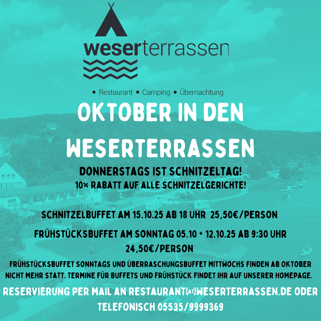 Die Küche der Weserterrassen ist von der Region inspiriert und bietet Ihnen die besten Gerichte aus der heimischen Tradition. Mit viel Liebe und Sorgfalt bereiten wir Ihnen regionale Klassiker wie knuspriges Schnitzel, herzhaftes Sauerfleisch oder frischen Fisch – und das alles mit hochwertigen Zutaten aus der unmittelbaren Umgebung. Die Zusammenarbeit mit regionalen Produzenten liegt uns besonders am Herzen, denn wir möchten Ihnen nicht nur den Geschmack der Region, sondern auch die Frische und Vielfalt unserer Heimat näherbringen.